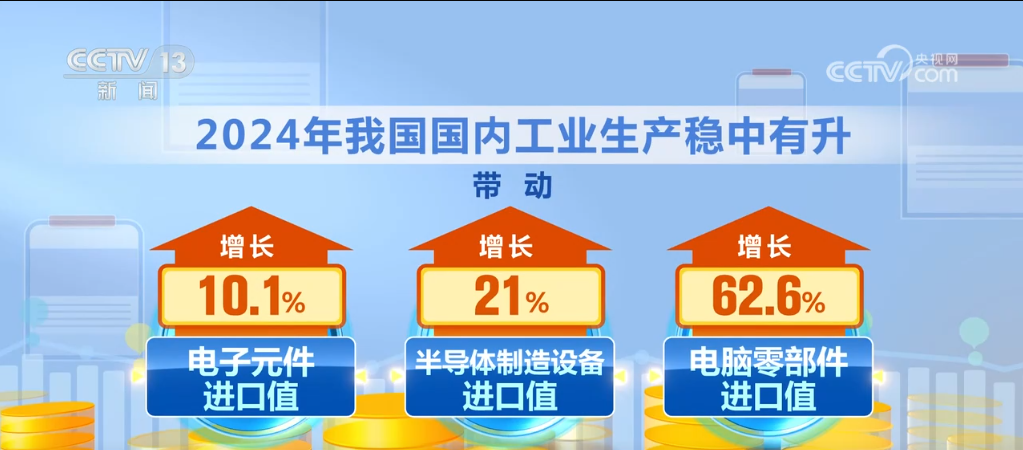 2024年,我国进口规模不竭扩大,不只满脚了国内出产需要,也丰硕了消费选择。客岁,我国国内工业出产稳中有升,带动电子元件、半导体系体例制设备、电脑零部件进口值别离增加10。1%、21%、62。6%;铁矿砂、天然气、煤等大商品进口量别离添加4。9%、9。9%、14。4%。同期,我国很多平易近生消费品的进口需求较为兴旺,如服拆、生果、葡萄酒等进口值别离增加5。6%、8。6%、38。8%。