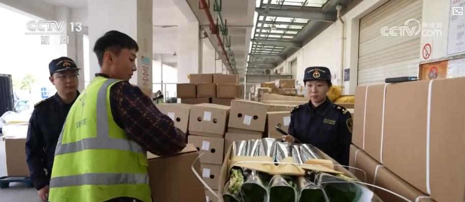 正在昆明长水机场记者看到,机场海关特地开通了绿色通道,确保鲜花即到即查即走。